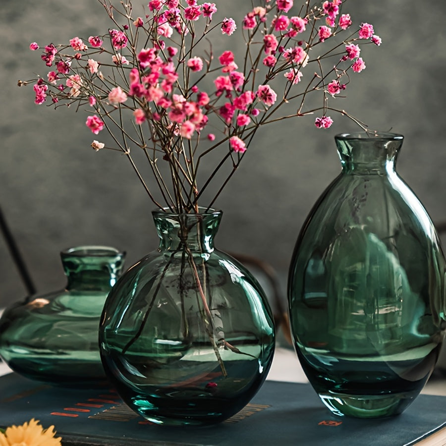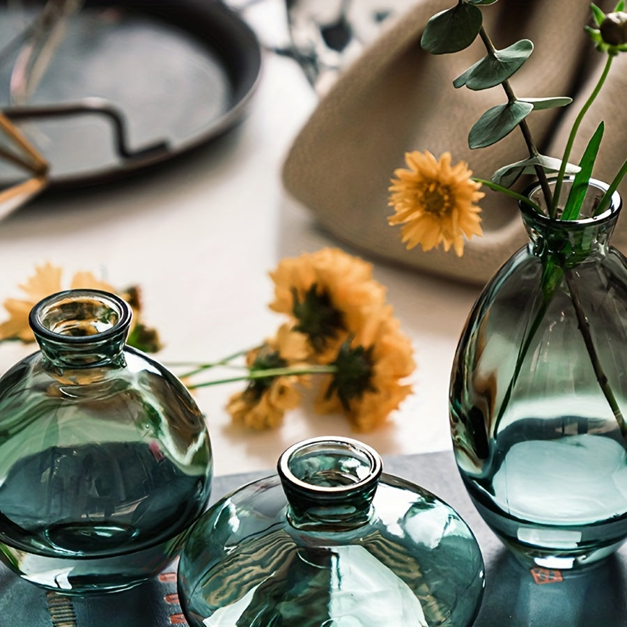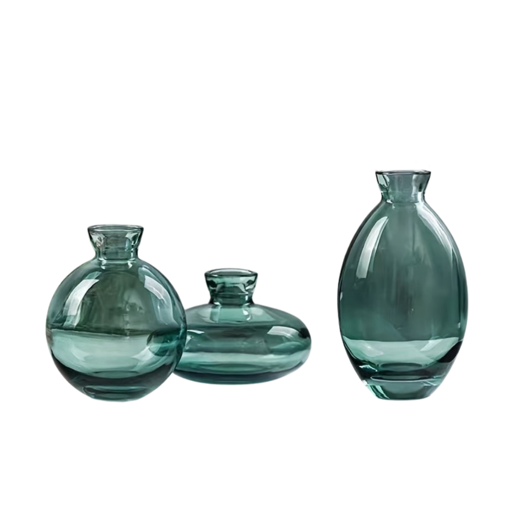 3-delige Mini Vaas Set – Groenblauw Glas voor Stijlvolle Decoratie