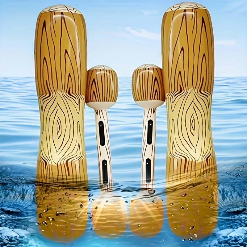 Beleef urenlang waterpret met de Boomstammen Battle set! Deze complete set van vier opblaasbare boomstammen en stokken is perfect voor zwembaden, meren of strand. Daag vrienden en familie uit voor een spannend duel en ram elkaar van de boomstammen af. Gemaakt van duurzaam PVC, eenvoudig op te blazen en met een veilig ontwerp voor kinderen en volwassenen. Ideaal voor zomerse dagen, feestjes en familiebijeenkomsten.
