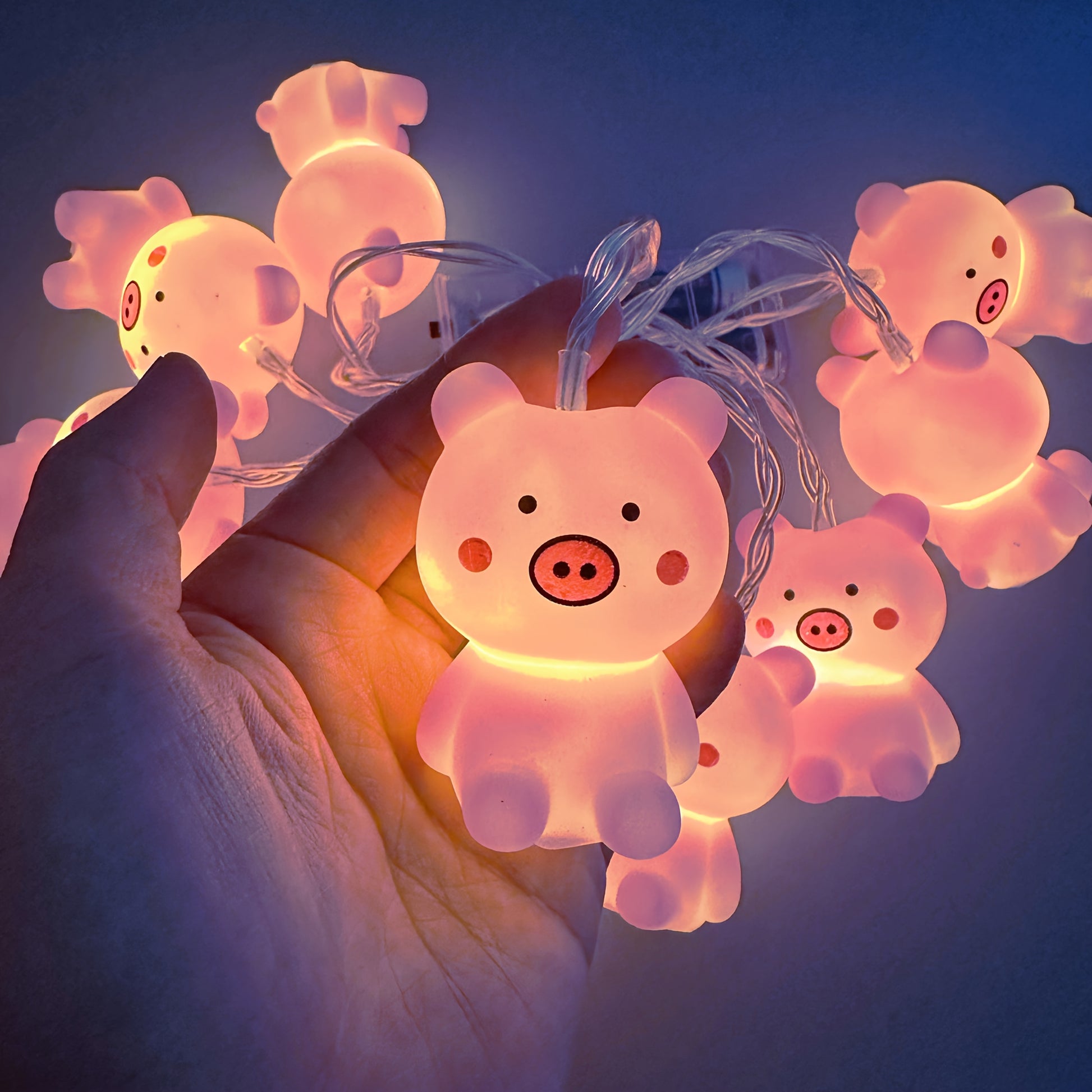 Breng warmte en gezelligheid in huis met deze biggetjes LED lichtslinger. Met een lengte van 165 cm en 10 schattige varkentjesfiguren is deze slinger ideaal als sfeerverlichting in de woonkamer, kinderkamer of tijdens feestjes. De verlichting werkt eenvoudig op 2x AA batterijen (niet inbegrepen), waardoor je geen stopcontact nodig hebt en de lichtslinger overal kunt plaatsen.