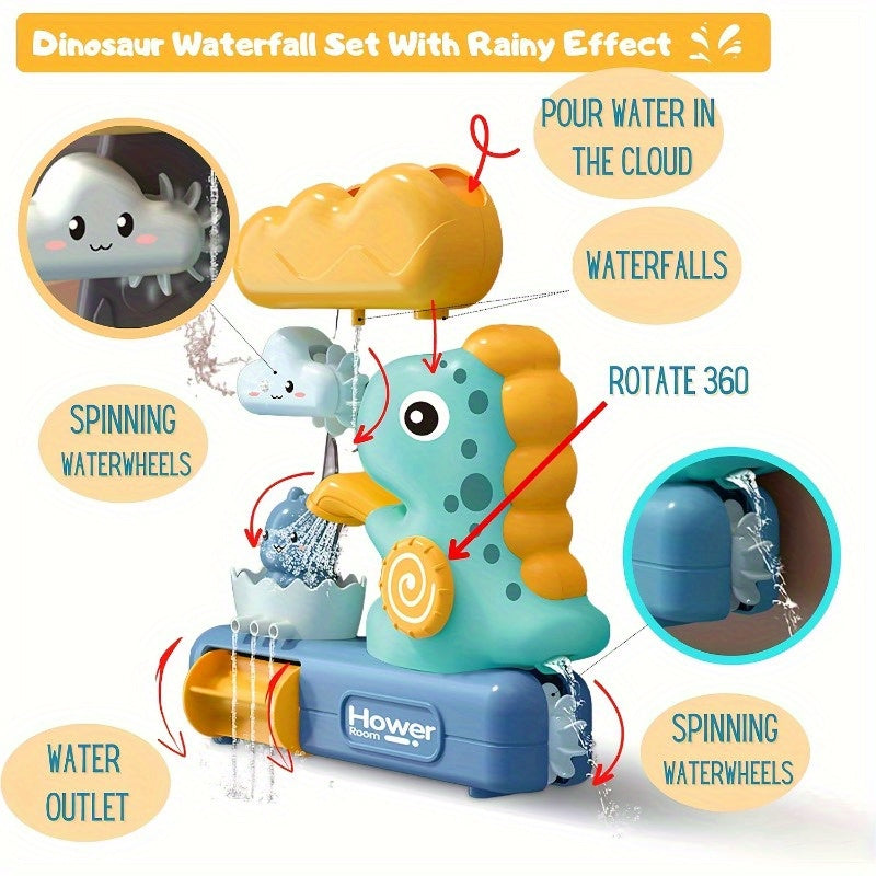 Breng extra plezier in bad met dit interactieve dino douchespeelgoed. Het kleurrijke ontwerp sproeit water als een echte douche en maakt van badtijd een speels en leerzaam moment. Kinderen genieten van de vrolijke dinosauruslook terwijl ze spelenderwijs hun zintuigen ontwikkelen. Ideaal om het badritueel leuker en gemakkelijker te maken, en een geweldig cadeau voor peuters en kleuters.