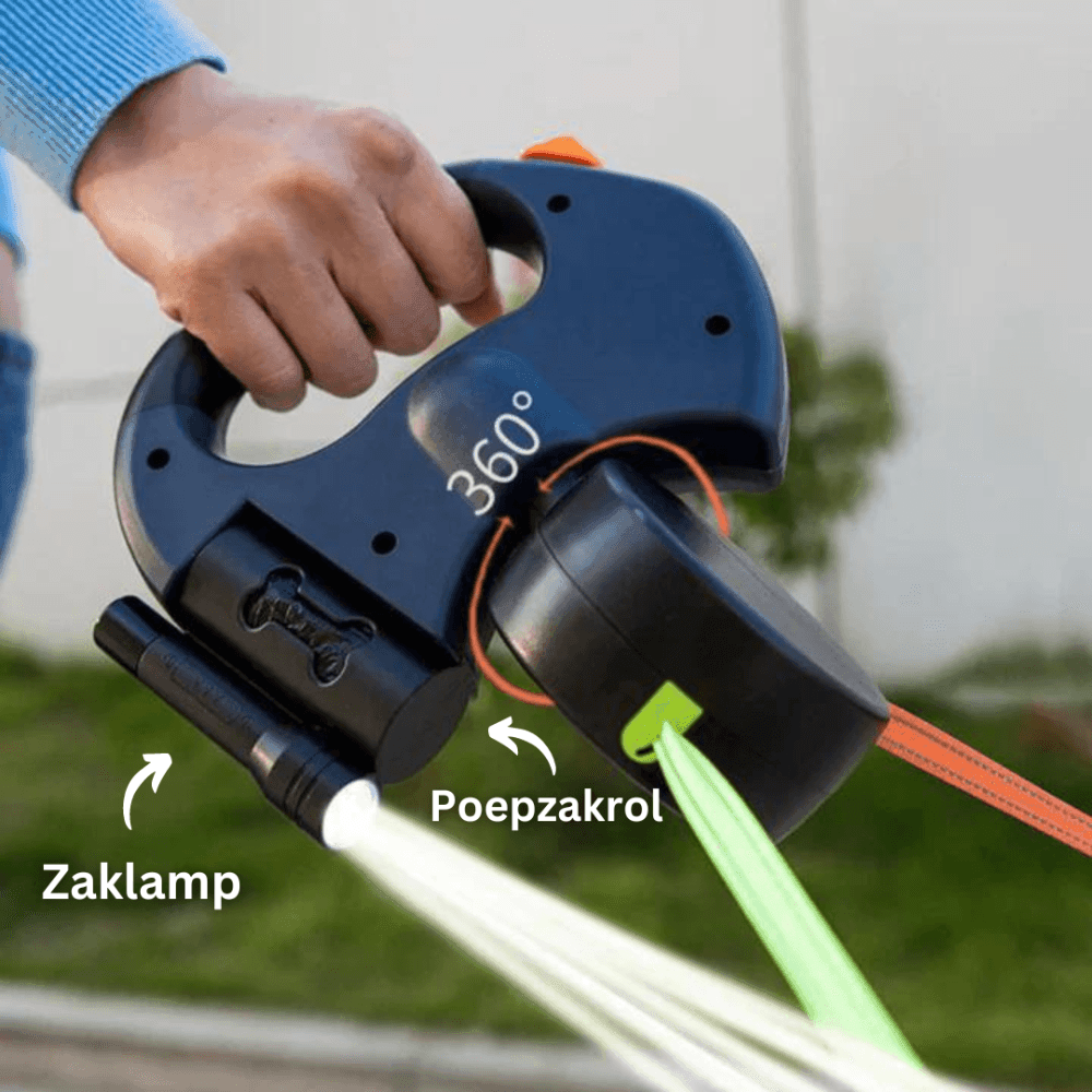 Maak wandelen met twee honden eenvoudiger en veiliger met de TwinPaws hondenriem. Dankzij het 360° ontwarringsmechanisme raken de riemen nooit meer verstrengeld. De intrekbare lijnen tot 3 meter geven je honden bewegingsvrijheid, terwijl jij met de individuele remknoppen volledige controle behoudt. De geïntegreerde zaklamp zorgt bovendien voor veiligheid tijdens avondwandelingen. Verkrijgbaar in rood en blauw – praktisch, stijlvol en ideaal voor elke hondenliefhebber!