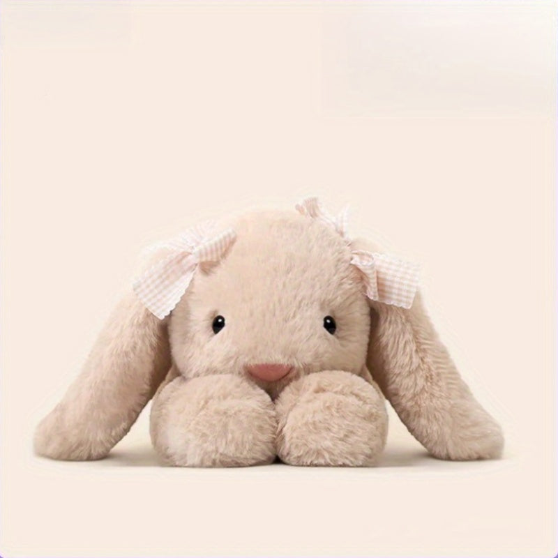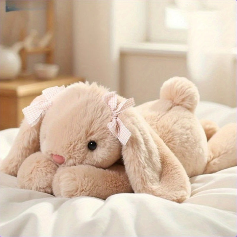 Dit schattige konijn knuffel van 35 cm is onweerstaanbaar zacht en een perfect knuffelmaatje voor jong en oud. Met zijn lange oren, lieve oogjes en schattige strikjes is dit pluche konijn niet alleen ideaal om mee te knuffelen, maar ook een prachtige decoratie voor de slaapkamer of kinderkamer. Het liggende design geeft de knuffel een extra speelse uitstraling en maakt hem tot een geliefd cadeau voor kinderen en konijnenliefhebbers.
