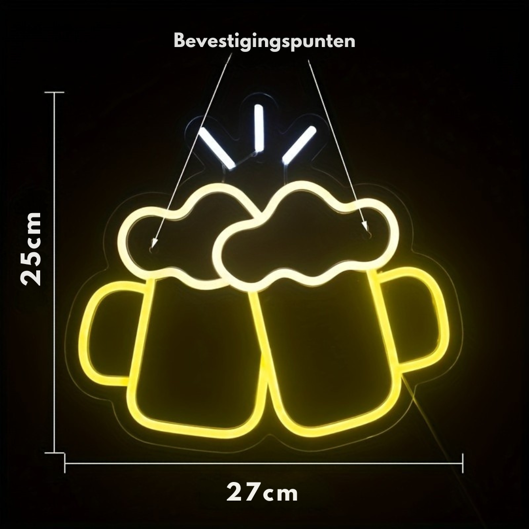 Neon Verlichting Bier Proosten - Unieke Wanddecoratie voor Thuis of je Mancave