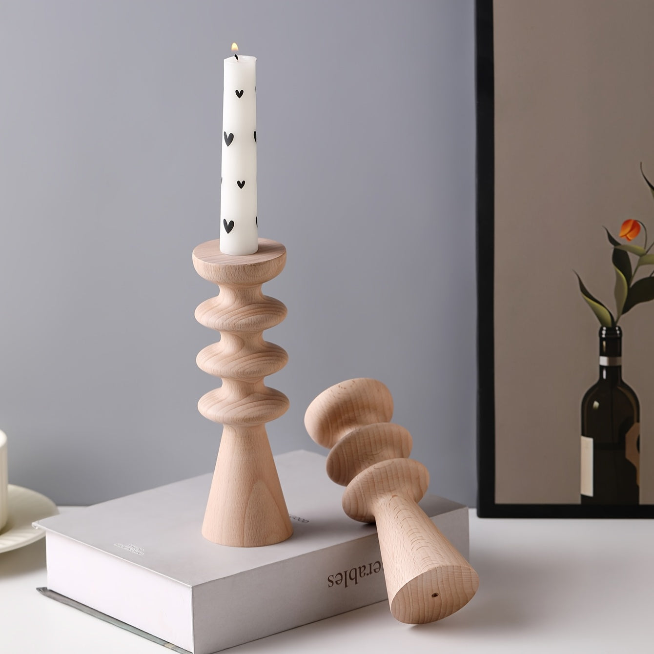 Voeg een vleugje natuurlijke elegantie toe aan uw interieur met deze set van 2 houten kandelaren. Met hun golvende silhouet en glad afgewerkte oppervlak passen ze perfect in elk modern, minimalistisch of Scandinavisch interieur. De warme houttint zorgt voor een rustgevende uitstraling, ideaal voor sfeervolle avonden of stijlvolle tafeldecoratie.
