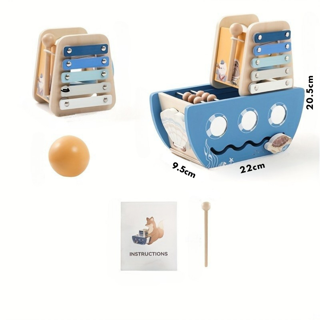Ga op avontuur met de Piratenschip speelset – een 5-in-1 educatief speelgoed dat jonge kinderen spelenderwijs laat leren. Het kleurrijke piratenschip bevat een spannende balbaan en verschillende interactieve onderdelen die de fantasie prikkelen. Perfect om de fijne motoriek, hand-oogcoördinatie en creativiteit te stimuleren. Met dit compacte en speelse ontwerp beleven peuters urenlang leerzaam plezier, thuis of onderweg. Ideaal als origineel cadeau voor kleine ontdekkingsreizigers.