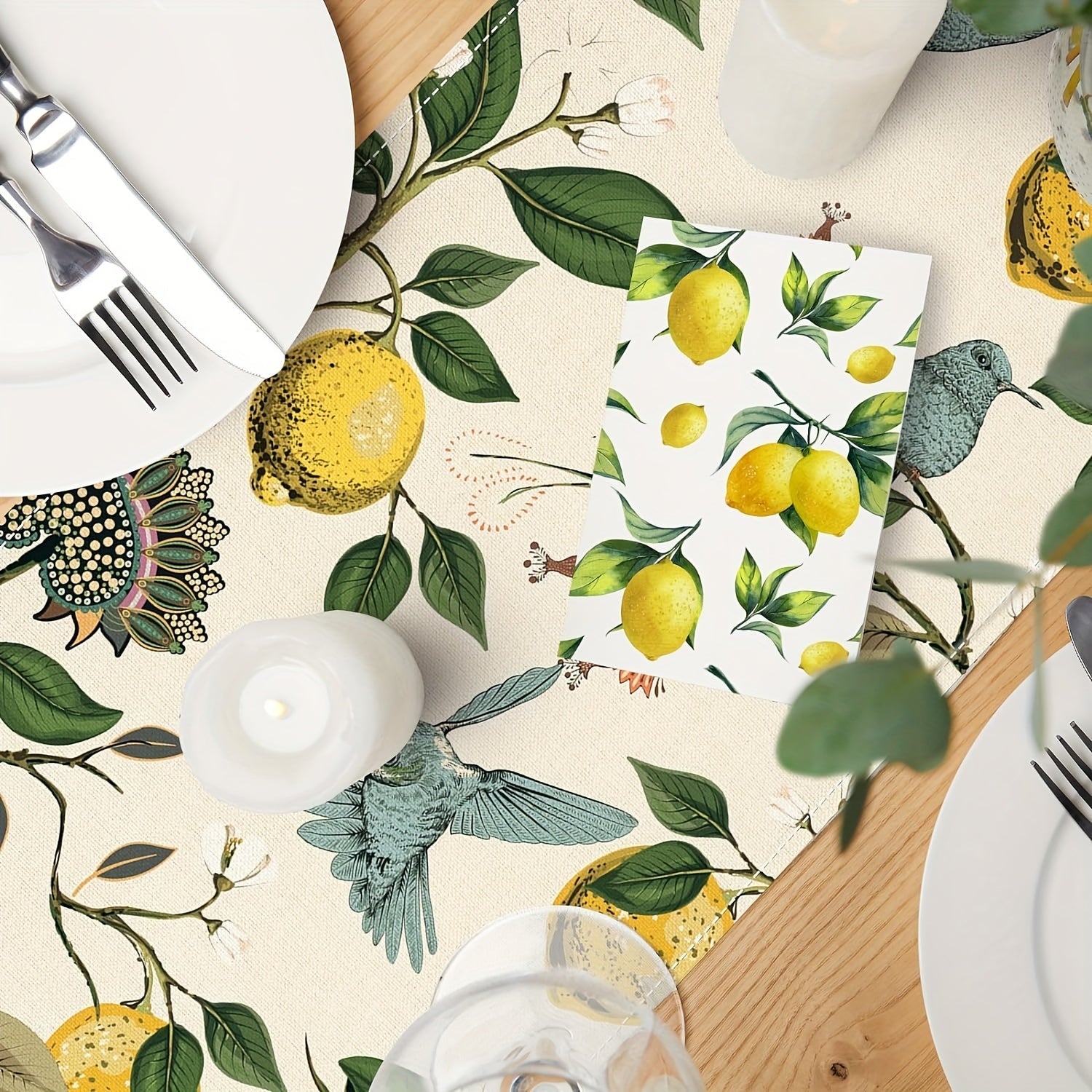 Breng een frisse en trendy sfeer naar tafel met deze retro tafelloper met blauwe vogels en citroenen. Gemaakt van duurzaam polyester linnen, perfect voor lente, zomer én dagelijks gebruik. Het speelse design voegt kleur en stijl toe aan elk interieur – ideaal voor brunch, diner of feestelijke gelegenheid.