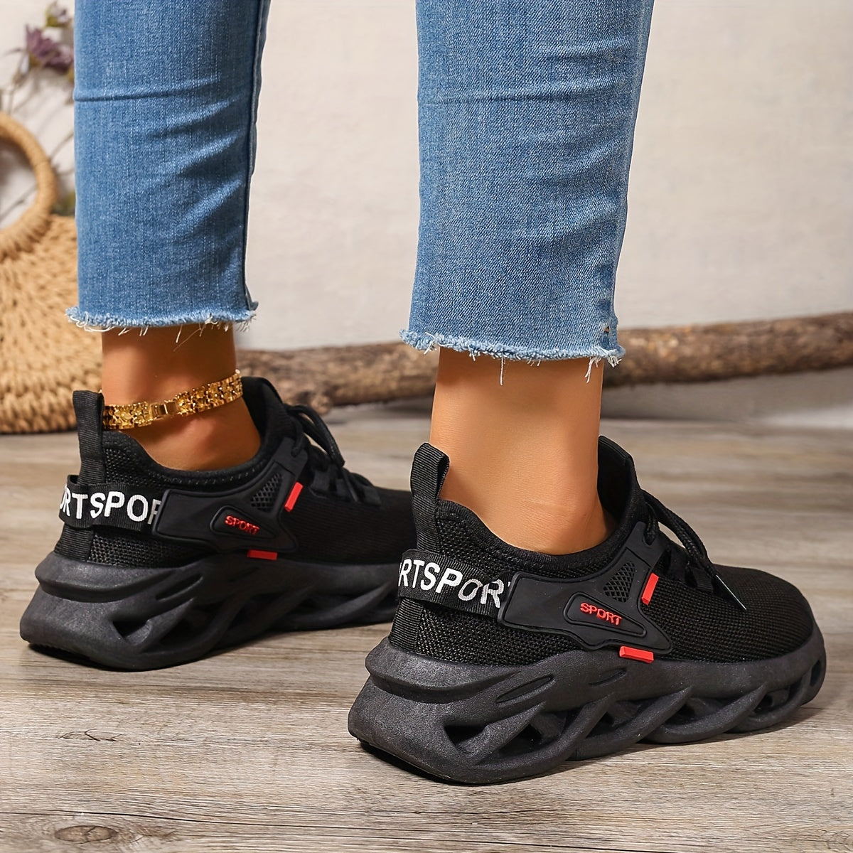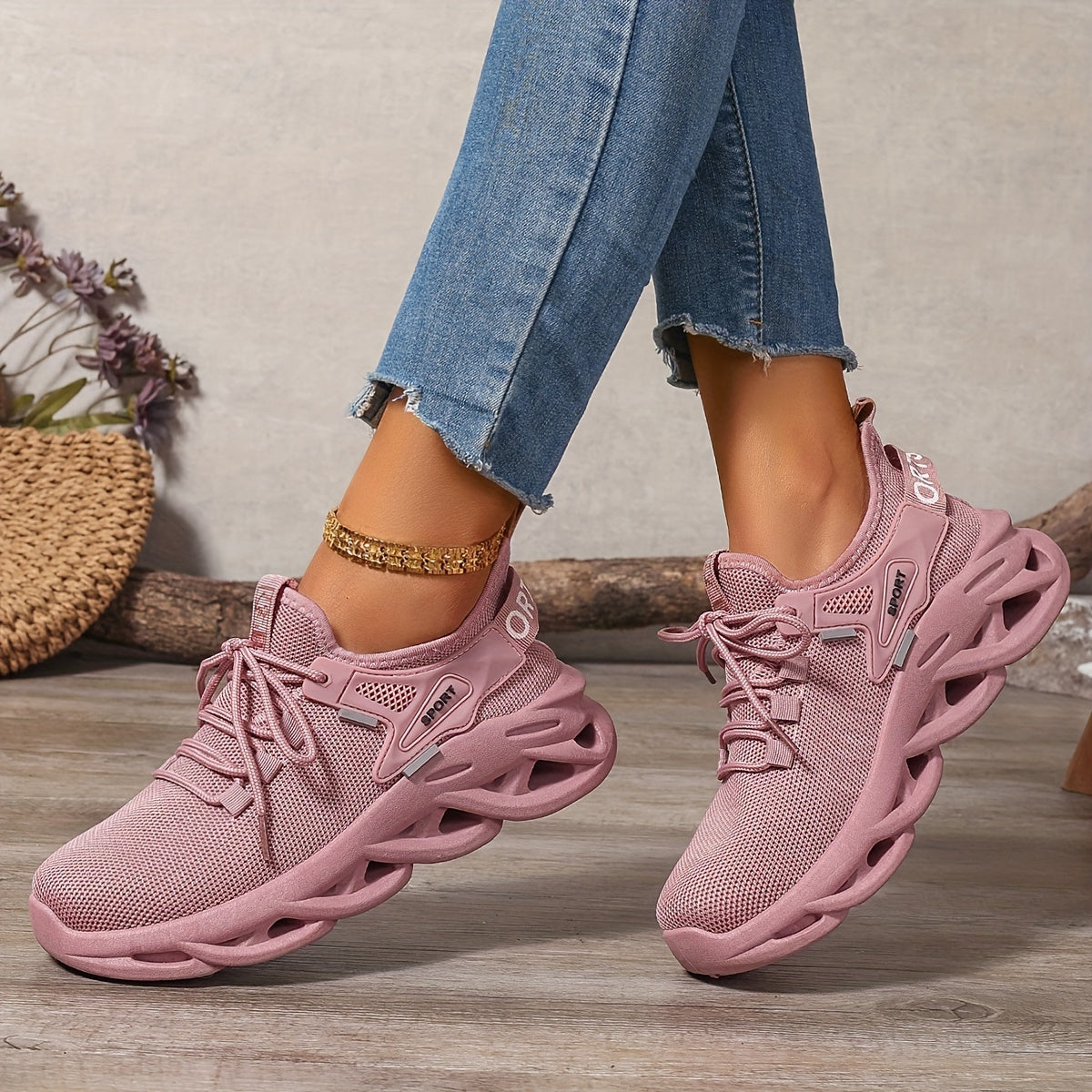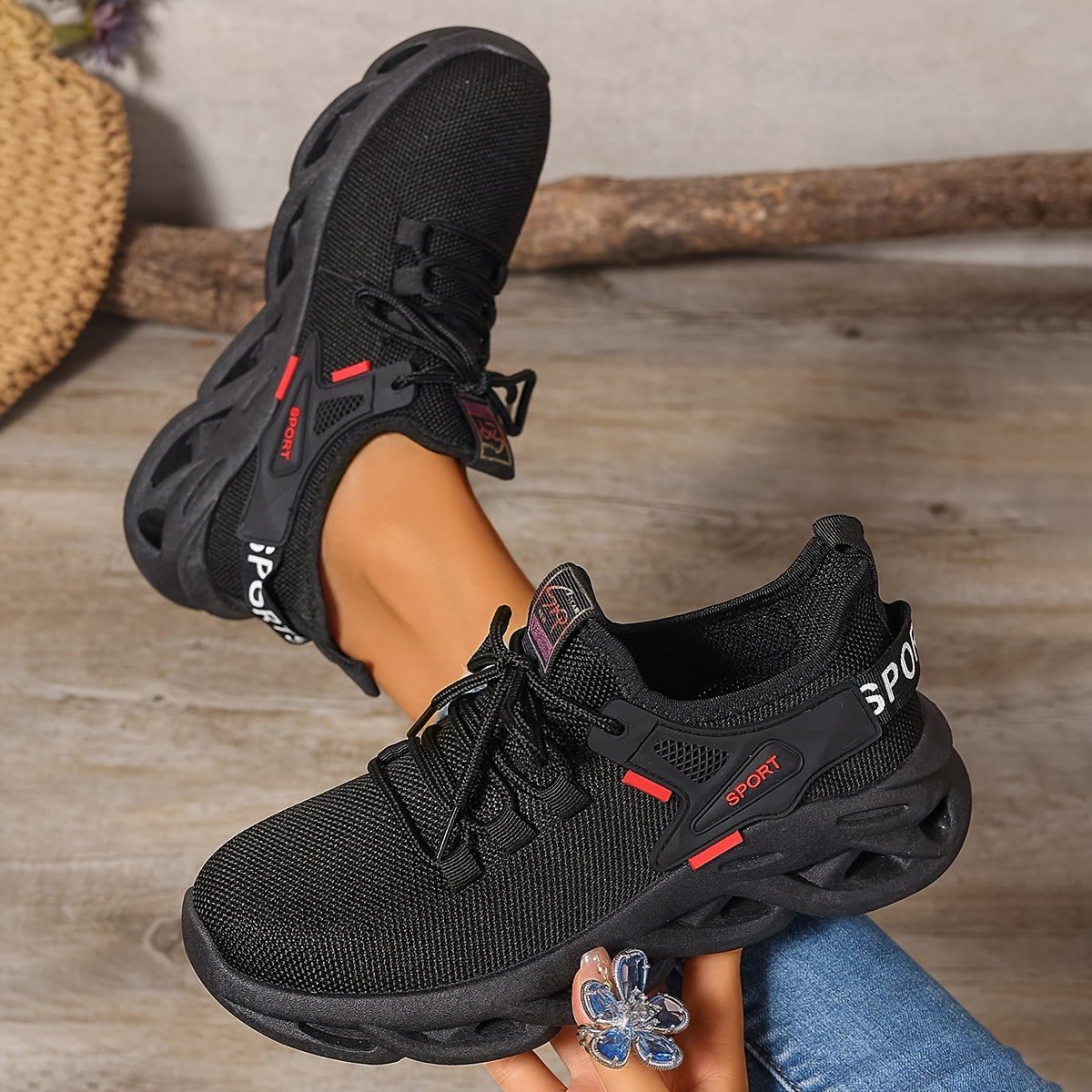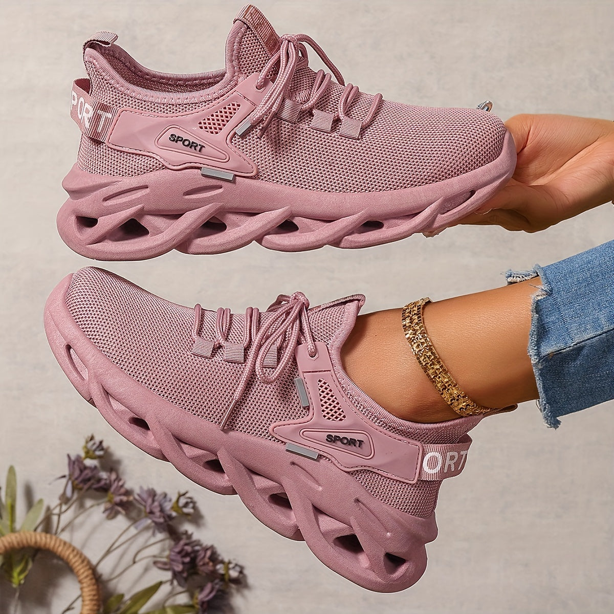- Materiaal: Ademend gebreid bovenwerk