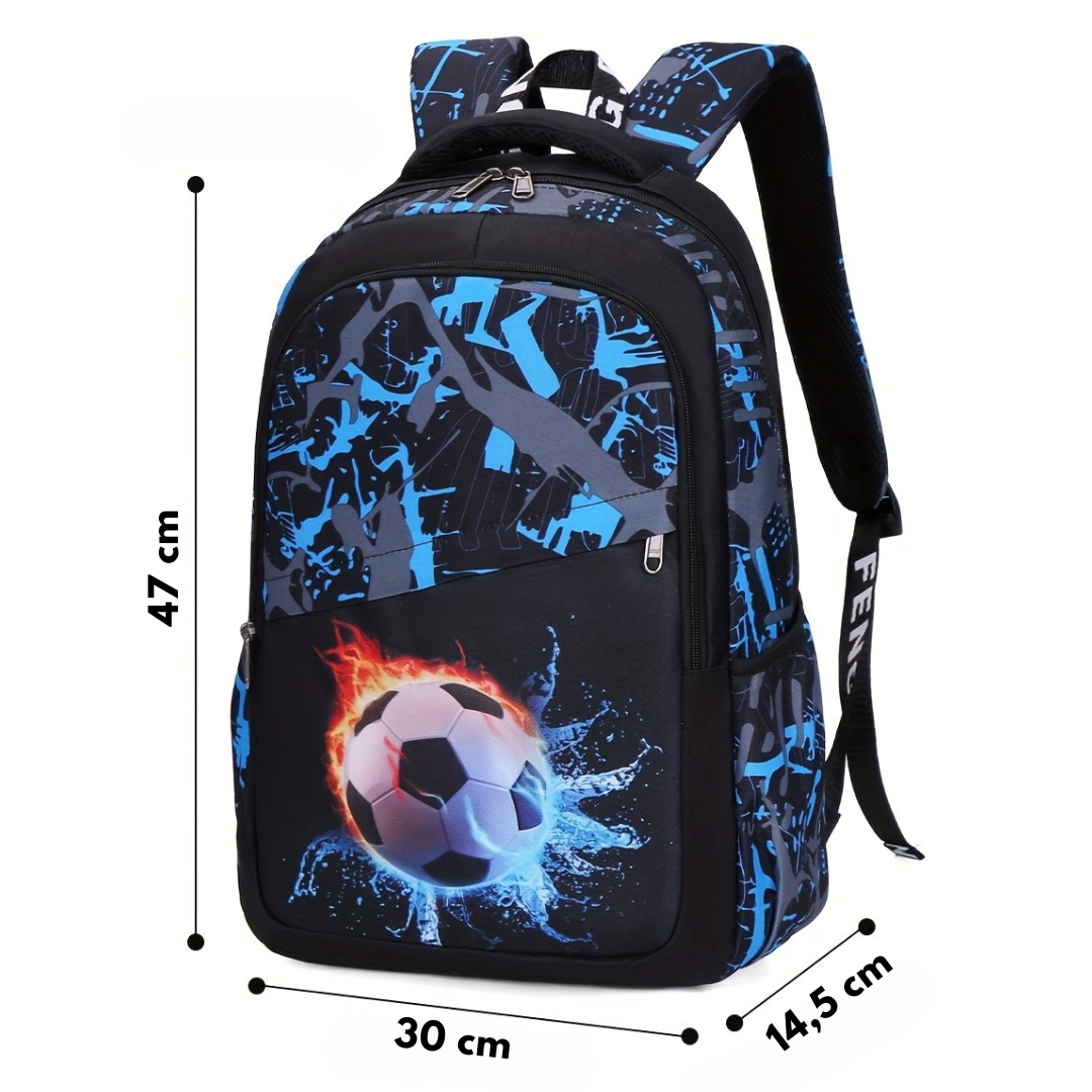 Deze schooltas met voetbalprint is ideaal voor jongens op de middelbare school. De rugzak heeft een apart laptopvak, meerdere opbergvakken en verstelbare banden voor optimaal draagcomfort. Dankzij het stoere voetbaldesign en de duurzame materialen is deze tas zowel praktisch als stijlvol. Perfect voor dagelijks gebruik naar school of sport.