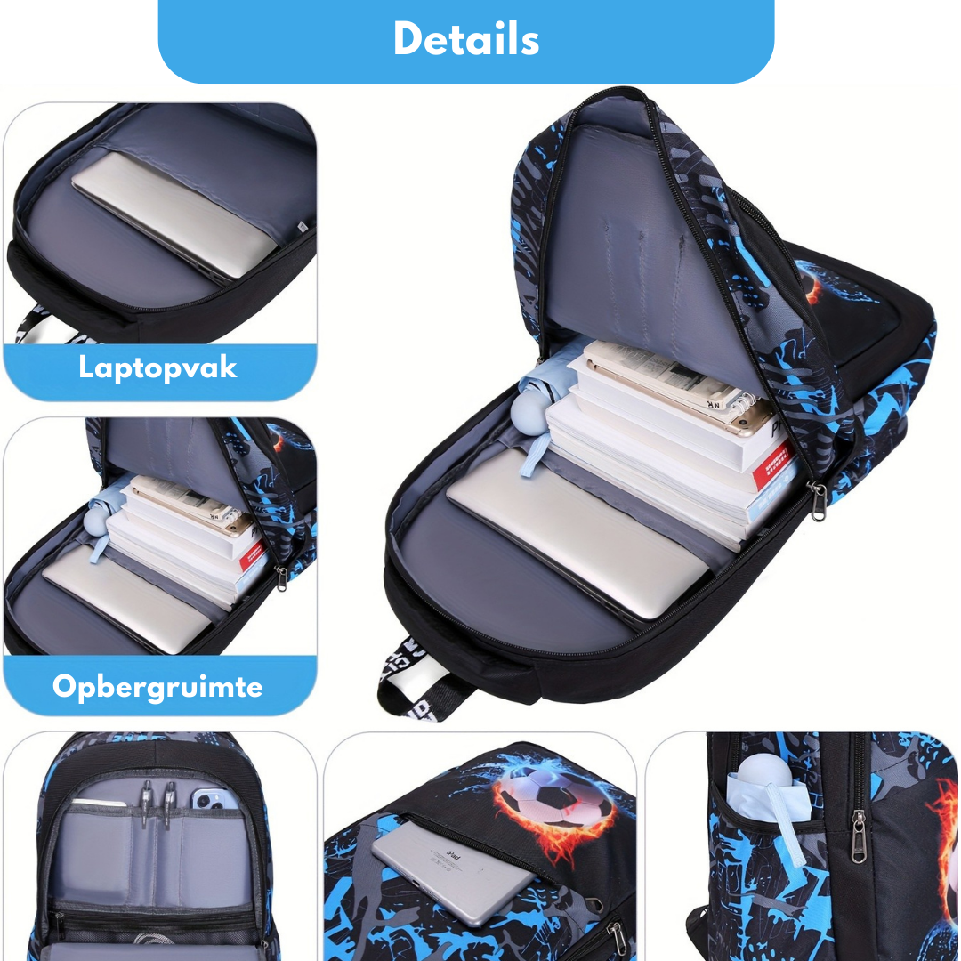 Schooltas Voetbal Jongens – Rugzak met Laptopvak