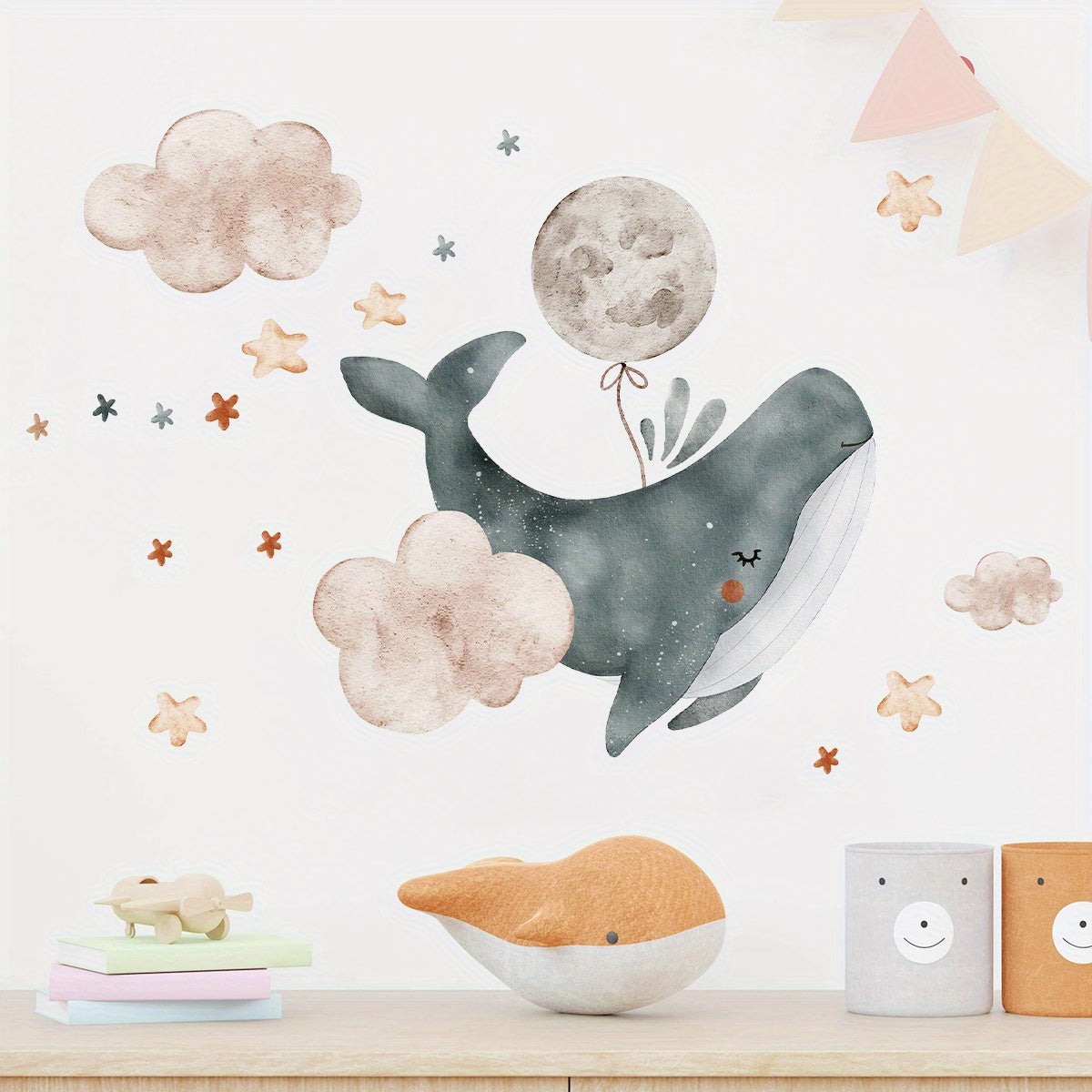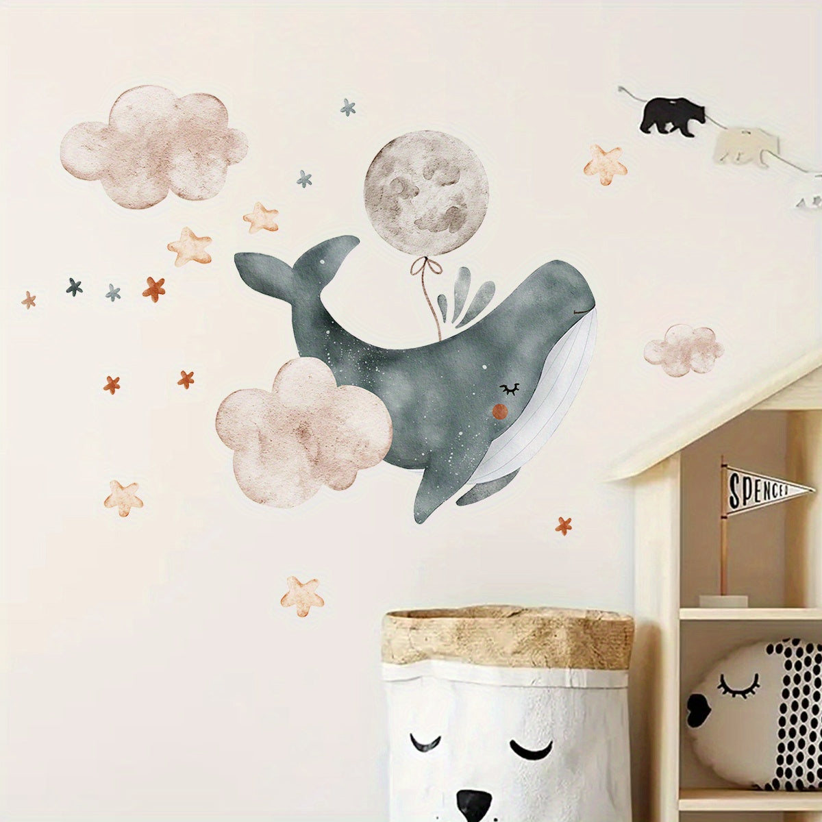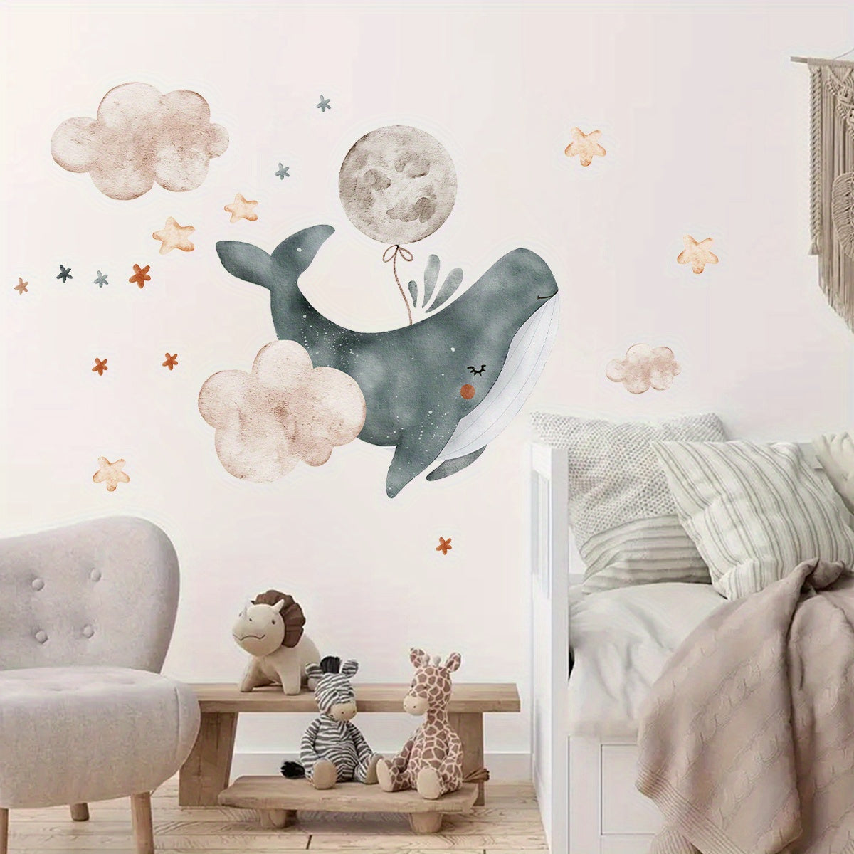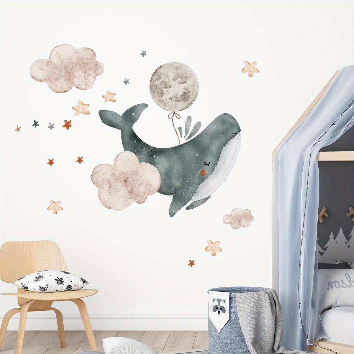 Breng een dromerige sfeer in de kinderkamer met deze Walvis Muursticker. De combinatie van een vriendelijke walvis, sterren en wolken creëert een rustgevende uitstraling. De sticker is zelfklevend, waterdicht en eenvoudig te verwijderen zonder resten. Dankzij de losse elementen kan de decoratie naar eigen wens worden ingedeeld. Ideaal voor babykamers, slaapkamers of speelhoeken.