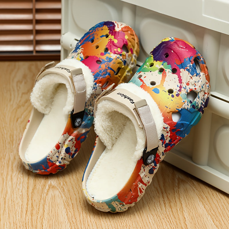 Warme Graffiti Sloffen - Winter Klompen Pantoffels Voor Binnen & Buiten